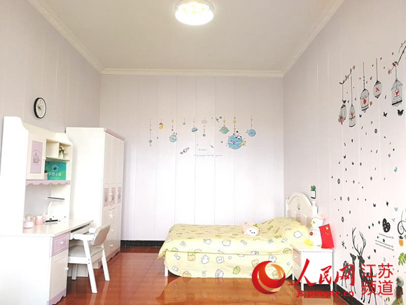 回到家開門的一瞬間,小迪吃驚得說不出話來。粉色的窗簾、可愛的公仔,房間里除了有小迪想要的東西外,還有新貼的墻板、墻紙,新購置的床、衣柜、桌椅、臺(tái)燈等。之前屋里的家具是舊的,墻壁是臟的,燈光昏暗,翻修后敞亮的房間跟新家別無兩樣,小迪心里像糖一樣甜。