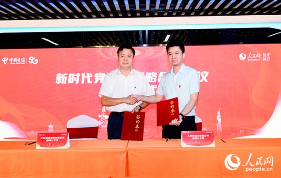 中國(guó)電信福建公司與人民網(wǎng)福建分公司簽訂戰(zhàn)略合作協(xié)議。中國(guó)電信福建公司供圖