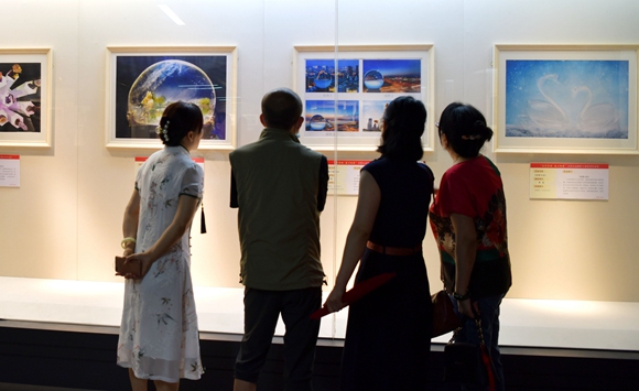 觀眾在水晶攝影作品前品鑒。張開虎攝