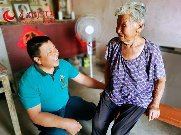 彼時,趙穎東才24歲。有一天,他騎車經(jīng)過章瑞興家門前,看到老人正在吃力地將新收割的麥子運回家。趙穎東上前幫忙,簡短的閑聊中,他得知老人身體不好,且孤身一人,當即在心里許下了“嗲嗲,以后沒事就來看看你”的承諾。這一“看”就是23年,章老嗲成了耄耋老人,當年的壯小伙也已年近半百。