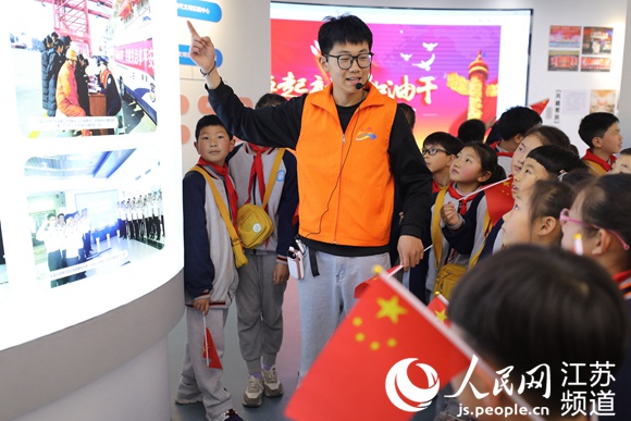 海州灣小學(xué)學(xué)生在連云區(qū)新時(shí)代文明實(shí)踐中心參觀主題展館。黃楚鈺攝