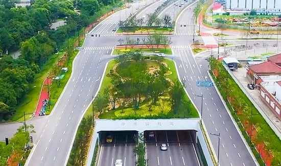 此外,該工程在建設(shè)中落實(shí)了創(chuàng)新綠色的發(fā)展新理念。在海綿城市建設(shè)方面,在中分帶內(nèi)設(shè)置雨水花園和雨水凈化系統(tǒng),削減道路面源污染;在建筑垃圾資源利用方面,使用廢棄渣土作為回填材料,在保證施工質(zhì)量的同時,實(shí)現(xiàn)了城市建設(shè)棄土的二次利用。