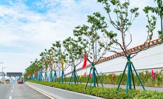 逐花異色的濱江新景觀給市民帶來全新視覺體驗(yàn)。揚(yáng)子江大道全線采用“觀葉、觀色和聞香”的理念,實(shí)現(xiàn)三季看花、一季看葉。兩側(cè)行道樹突出秋天觀葉主題,是南京首條選用無患子做行道樹的道路,該樹在秋天將呈現(xiàn)一片金黃色。而中分帶選用紅色的陽光櫻和梅花搭配,在冬春時節(jié)交替開放,將形成一條紅色花海路。