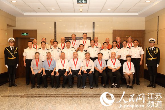南京海關關領導與榮獲“光榮在黨50年”紀念章的黨員代表合影。林軍攝
