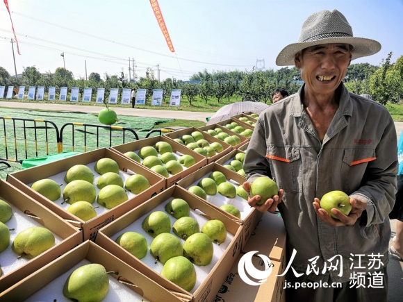 農(nóng)民采摘的新鮮“泰興雪梨”。 人民網(wǎng) 張玉峰攝