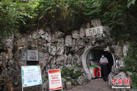7月10日,江蘇省南京市,市民走出北極巖人防工程。從當日起,南京免費開放六處“防空洞”作為納涼點,還提供飲用水、報刊和WiFi信號等,為民眾提供一個愜意的避暑環(huán)境。 中新社記者 泱波 攝