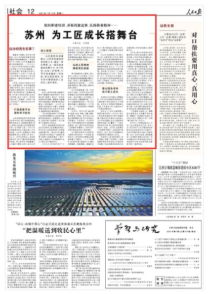 在蘇州,像徐維貴這樣堅守崗位發(fā)光發(fā)熱的工匠故事還有很多。蘇州市總工會勞動和經(jīng)濟工作部部長顧詠梅介紹,一直以來,蘇州重視工匠培育,先后推出了“金藍領(lǐng)”培育工程等29條新政策及“一攬子”方案,讓高層次人才和高素質(zhì)產(chǎn)業(yè)工人愛上蘇州、建設(shè)蘇州。