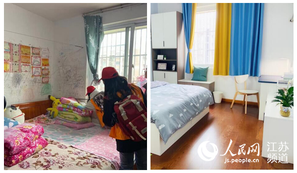 淡藍(lán)色的墻面,嶄新的櫥柜,還有書桌上明亮的臺燈,一切都是小鑫當(dāng)初想象的模樣。當(dāng)再次走進(jìn)曾經(jīng)擁擠簡陋的臥室,小鑫開心得露出了甜甜的笑容。