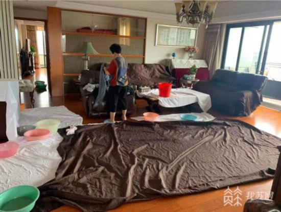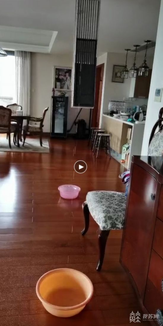季女士家住南京仁恒國(guó)際公寓28樓,7月17號(hào)上午,她突然發(fā)現(xiàn)家里衛(wèi)生間頂燈部位不停往下滴水,見(jiàn)此情形,她趕緊拿盆接水,可沒(méi)過(guò)多久,她又聽(tīng)到客廳、書(shū)房等多個(gè)房間傳來(lái)了嘩嘩的水聲。