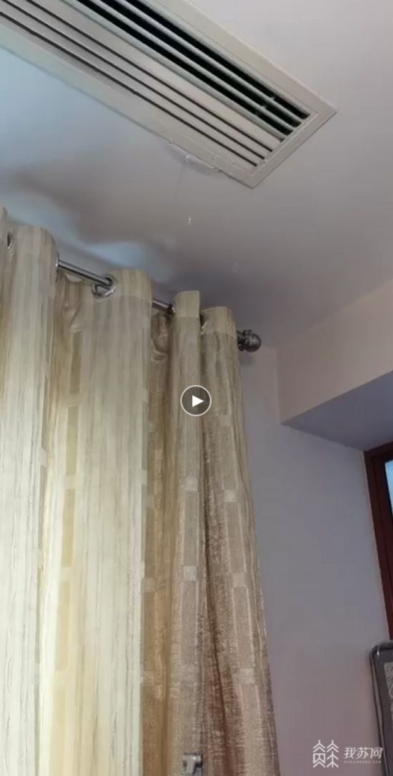 “從空調(diào)出風(fēng)口往下滴,當(dāng)時(shí)盆不止兩、三個(gè),整個(gè)像水簾洞一樣的,嘩啦嘩啦滴了下來(lái),當(dāng)時(shí)倒了好幾桶水,非常嚴(yán)重。整個(gè)房間里全是水,都來(lái)不及弄了!奔九糠Q。