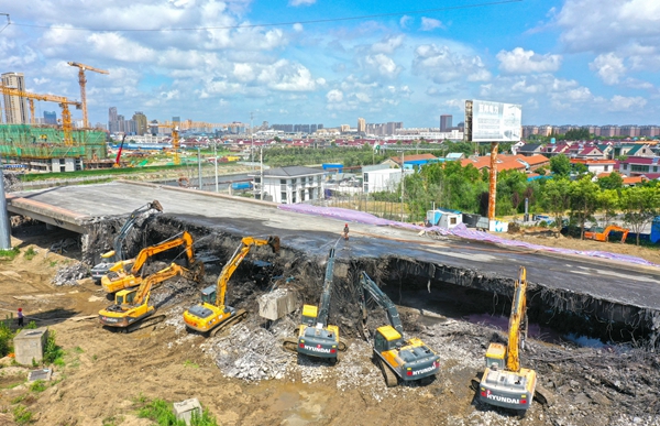 日前,我市黃海大道通揚(yáng)河橋改造工程正在緊張有序施工中。為確保不落工期,工人們頂著烈日,認(rèn)真細(xì)致地完成著各項(xiàng)工作。圖為舊橋拆除現(xiàn)場。