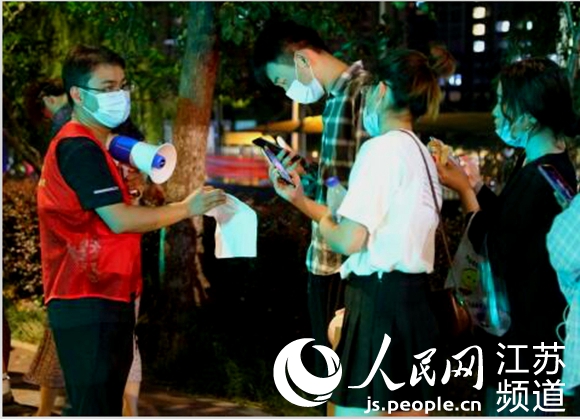 “掃描二維碼獲取信息,請大家排好隊戴好口罩!奔t馬甲、小喇叭、宣傳單,沿江街道路西社區(qū)的志愿者為居民提供幫助、解答疑問,奔走在隊伍之中。