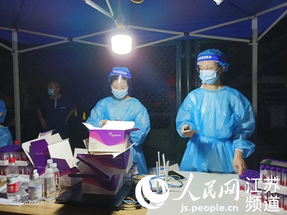 這一夜,醫(yī)護人員克服酷暑,黨員干部志愿者加班加點,市民群眾有序排隊積極配合,核酸采樣高效推進。截至7月22日11時,南京江北新區(qū)完成采樣324539人。(王彤)