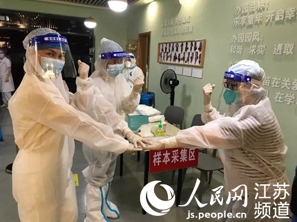 “工作人員忙了一天,還有很多是從江寧回來的,他們最辛苦,我們在現(xiàn)場要遵守秩序,排好隊,配合檢測!本用駛冎刃蚓坏嘏胖。