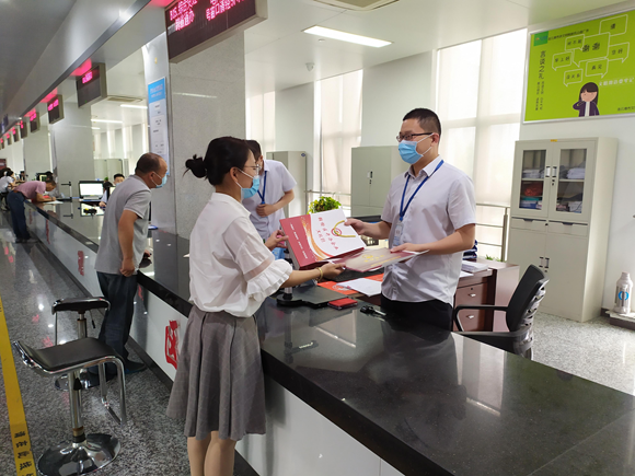 工作人員為新辦企業(yè)送上政策“大禮包”。贛榆區(qū)委宣傳部供圖