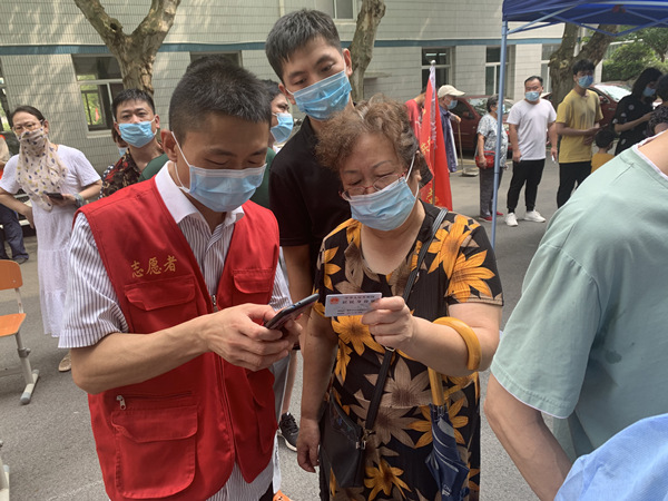 現(xiàn)場(chǎng)志愿者協(xié)助群眾檢測(cè)登記。常劍峰攝