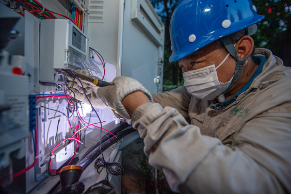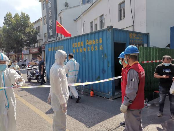 國(guó)網(wǎng)南京供電公司計(jì)量室為新港經(jīng)濟(jì)開(kāi)發(fā)區(qū)核酸臨時(shí)檢測(cè)點(diǎn)接電。國(guó)網(wǎng)南京供電公司供圖