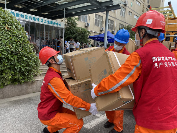 石城共產(chǎn)黨員服務(wù)隊(duì)主動(dòng)為建鄴區(qū)興隆社區(qū)衛(wèi)生服務(wù)中心運(yùn)送防疫物資。國(guó)網(wǎng)南京供電公司供圖