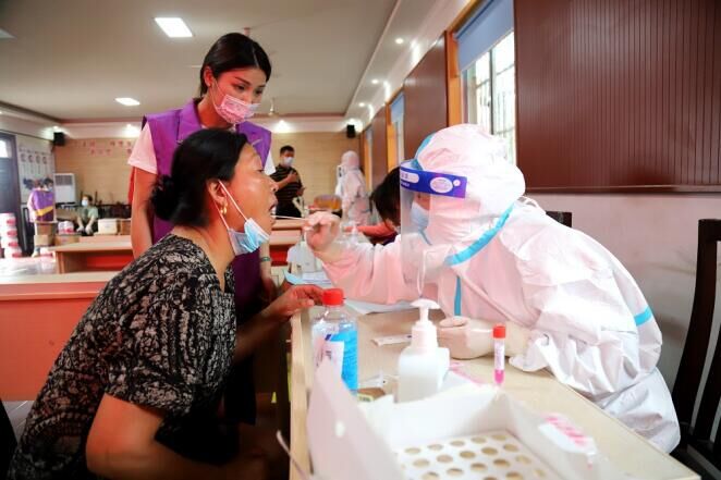 上午10點,東壩街道和睦澗村檢測點,一輛汽車緩緩?fù)O拢?0多歲的馬奶奶被志愿者攙扶著從車上下來,五六分鐘后,咽拭子采集完畢,老人被重新送上“專車”,送回家中。“謝謝你們,我眼睛不好,腿又走不動,這么熱的天,辛苦你們了。”老人很是感動。