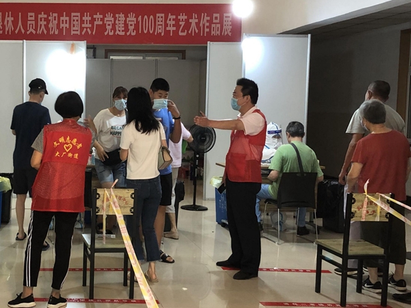 “核酸檢測(cè)前麻煩您在這邊登記一下個(gè)人信息!”“天氣熱,您多喝點(diǎn)水解暑降溫!”“不要著急,大家一定要把口罩戴好,把隊(duì)排好……”青年志愿者陸迅已經(jīng)連軸轉(zhuǎn)了近8個(gè)小時(shí),他用沙啞的聲音不斷向群眾進(jìn)行提醒,這些話他已經(jīng)記不得自己重復(fù)多少遍了。有些老年人不會(huì)操作流程,志愿者任新藝手把手地為他們解答、幫他們注冊(cè),用貼心的服務(wù)安撫他們的情緒。閔小偉等其他志愿者們耐心地為前來檢測(cè)的群眾科普防疫知識(shí)。
