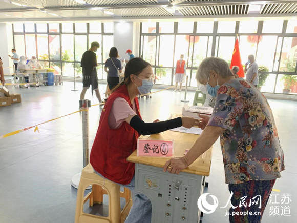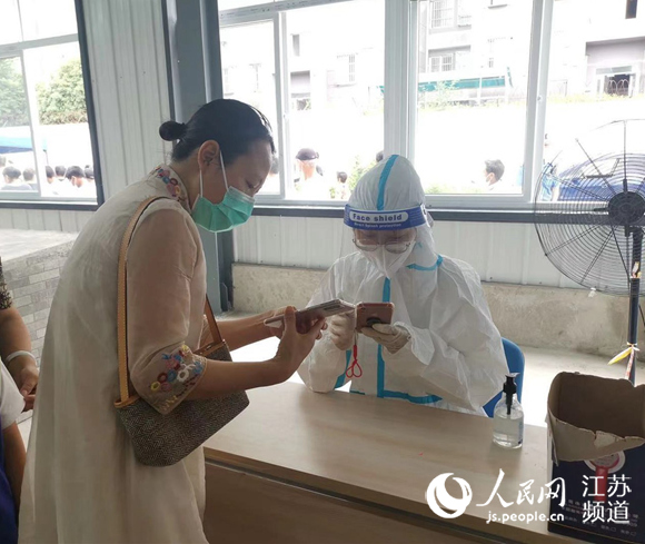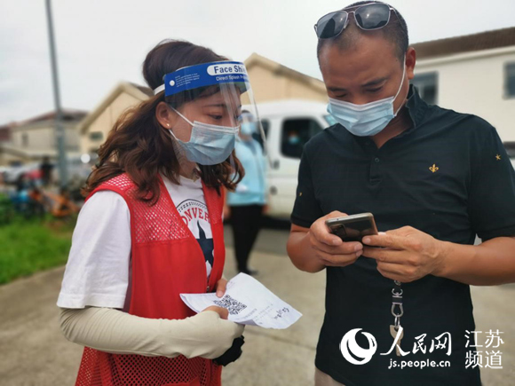 在盤城街道老幼崗社區(qū)的檢測現(xiàn)場,有一個身影在隊伍里忙前忙后,她叫吳瓊,是一名00后,也淮陰師范學(xué)院的一名大二學(xué)生。在看到社區(qū)發(fā)布的全民核酸檢測通知后,她第一時間聯(lián)系社區(qū),主動要求參與志愿服務(wù)工作。