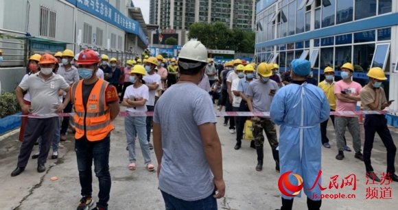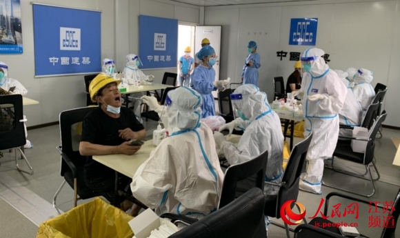 建鄴區(qū)建筑工地核酸檢測現(xiàn)場。李玲蔚攝
