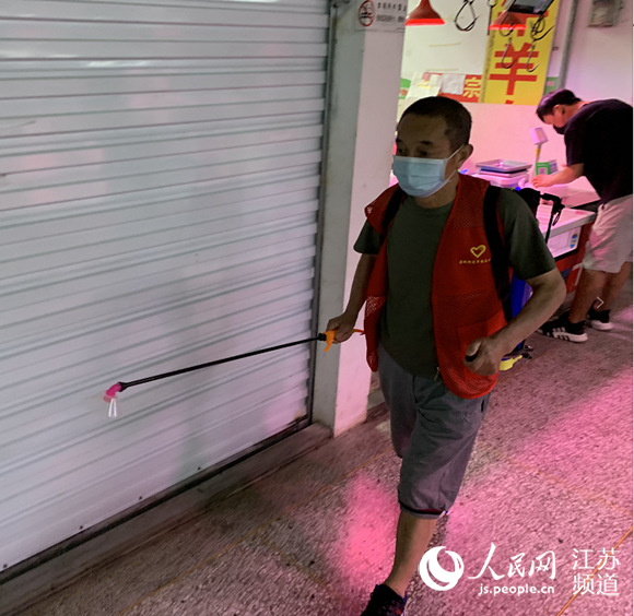 工作人員對(duì)農(nóng)貿(mào)市場(chǎng)開展日常消毒。盤城街道供圖
