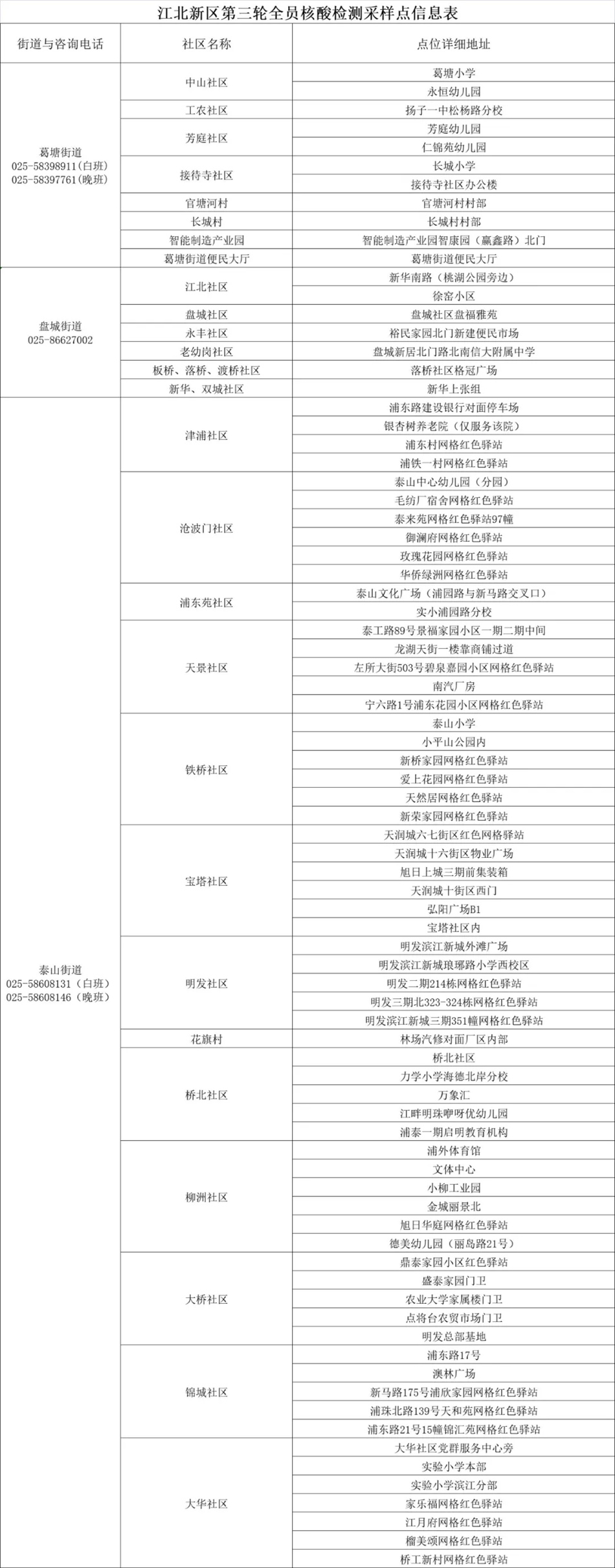 南京江北新區(qū)第三輪全員核酸檢測7月30日8點開始