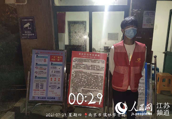 “00后”管金陽(yáng)是江寧交通技術(shù)學(xué)院的一名大三學(xué)生,在社區(qū)開展大規(guī)模核酸檢測(cè)時(shí),他在現(xiàn)場(chǎng)維持秩序,幫助登記信息,還主動(dòng)要求值夜班,在居民小區(qū)門口測(cè)量體溫,登記返寧人員信息,查驗(yàn)蘇康碼,常常工作到凌晨。不僅如此,他還將自己兼職掙的錢拿出來,捐給盤城社區(qū),“這個(gè)時(shí)候社區(qū)是最需要幫助的時(shí)候,我很想盡自己的一份力量為社區(qū)做些事,為疫情防控做些事!惫芙痍(yáng)說道。