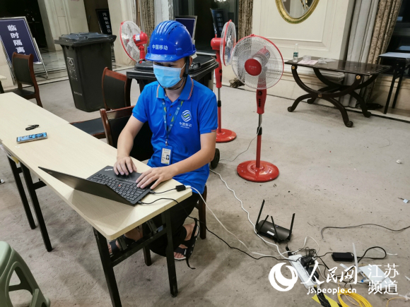 7月25日,移動員工連夜為溧水區(qū)15個檢測點接入專網(wǎng),確保檢測數(shù)據(jù)快速上傳。江蘇移動供圖