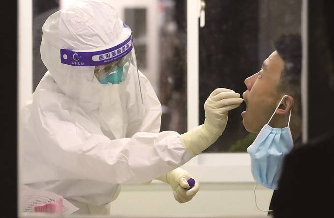 在溧水區(qū)人民醫(yī)院,醫(yī)務(wù)人員為市民進行核酸檢測取樣。(新華社發(fā))