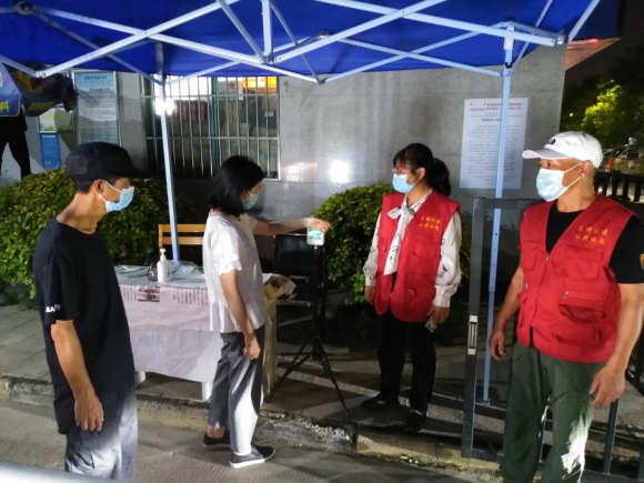 8月2日一大早,一群紅馬甲就出現(xiàn)在缽池街道各個(gè)角落,一個(gè)個(gè)鮮紅的志愿馬甲穿梭在威海路、深圳路、南昌路及轄區(qū)各個(gè)居民小區(qū),發(fā)放《致經(jīng)營(yíng)戶(hù)的一封信》、《致居民的一封信》,檢查并協(xié)助各經(jīng)營(yíng)戶(hù)和居民小區(qū)開(kāi)展進(jìn)出人員和車(chē)輛登記、體溫測(cè)量、查驗(yàn)行程碼、健康碼等工作。在各片區(qū)巡回巡查,對(duì)出門(mén)活動(dòng)、聚集的人群進(jìn)行勸導(dǎo)疏散,對(duì)未戴口罩外出的人員進(jìn)行制止,當(dāng)日勸離65起136人次。