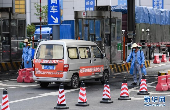 8月3日,在南京農(nóng)副產(chǎn)品物流配送中心,工作人員在對(duì)進(jìn)入車輛消毒。