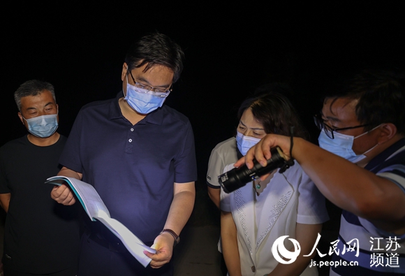 縣委書記鄧勇凌晨1點檢查防汛。盱眙縣委宣傳部供圖