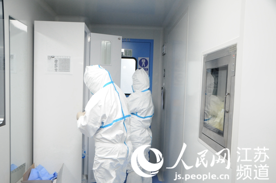 防護服+N95、護目鏡+面屏、鞋套+手套,工作人員“全副武裝”進入實驗室。玄武區(qū)疾控中心供圖