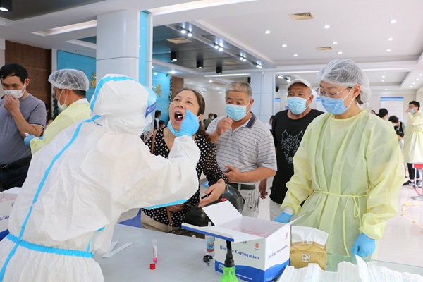 80歲的錢富清和老伴早早地排在了隊伍的最前面,他告訴記者:“6日晚我們接到通知后,凌晨3點半就按照要求來到采樣點等候,做完檢測,我們也更加放心。全員檢測不僅是對我們負(fù)責(zé),也是為了我們的健康,所以我們?nèi)ε浜稀!?/p>