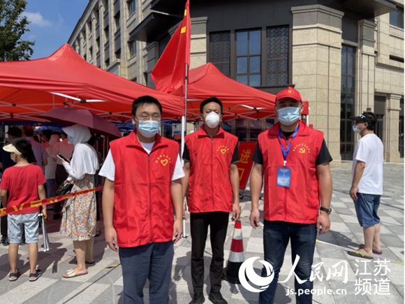 8月6日清晨,封閉管理的弘揚(yáng)花園小區(qū)大門口,一面鮮紅的黨旗飄揚(yáng),幾位“小紅帽”站成了一道風(fēng)景線:掃碼、測溫、登記、宣傳、提醒……一張小方桌上,小喇叭不停地廣播著,體溫槍、登記簿、消毒噴壺等物品整齊地?cái)[放著。揚(yáng)州煙草黨組成員、副局長周向鵬正帶領(lǐng)10名黨員干部組成的志愿者服務(wù)隊(duì),協(xié)助社區(qū)做好早8點(diǎn)至晚6點(diǎn)間的抗疫志愿服務(wù)工作。