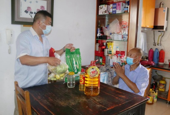 興化煙草居民服務(wù)組黨員為行動不便的老人代購生活用品。劉文杰攝