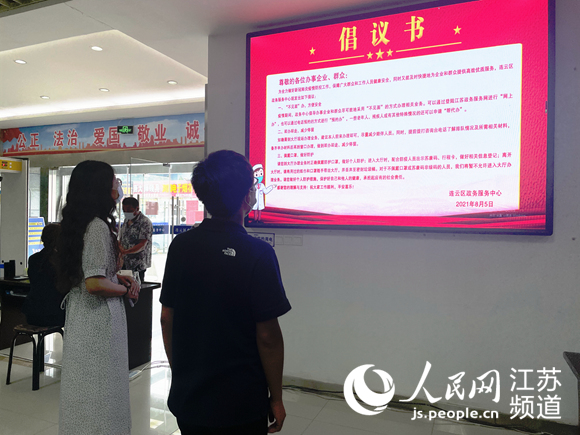 連云區(qū)政務(wù)服務(wù)中心對(duì)外發(fā)布“網(wǎng)上辦不見(jiàn)面倡議書(shū)” 連云區(qū)委宣傳部供圖