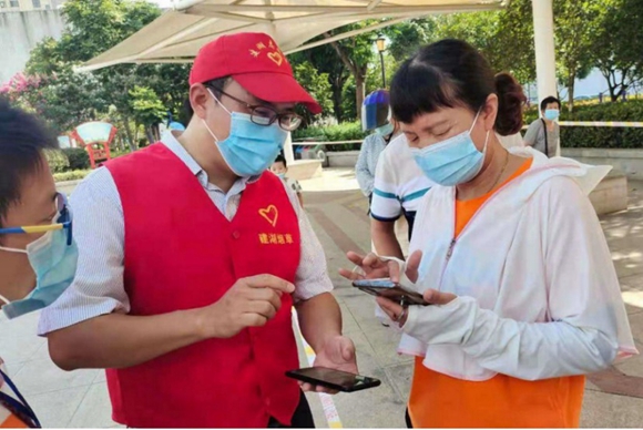 據(jù)了解,這群“紅馬甲”是江蘇省鹽城市建湖縣煙草專賣局(以下簡稱建湖煙草)的一群青年志愿者,他們在服務(wù)群眾掃碼、注冊“核酸采樣登記”小程序等。