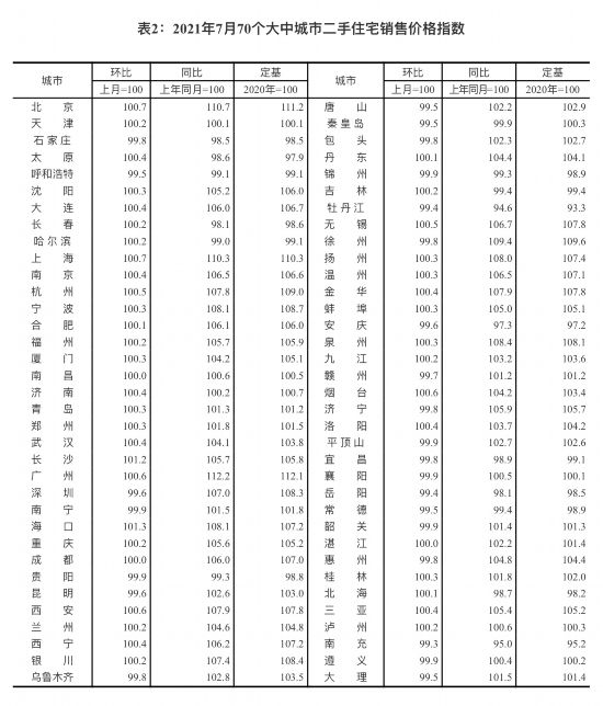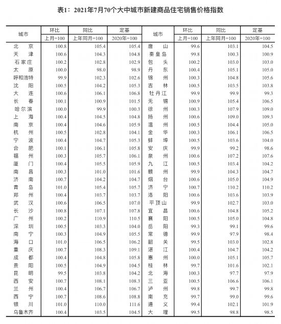 國家統(tǒng)計局城市司首席統(tǒng)計師繩國慶解讀說,2021年7月份,70個大中城市商品住宅銷售價格環(huán)比、同比漲幅總體回落。