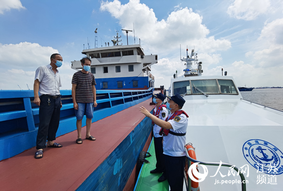 海事工作人員檢查水上防疫情況。揚州海事局供圖