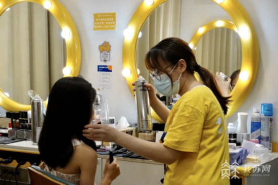 江寧區(qū)東山街道某商場內(nèi),除了兒童樂園,商場內(nèi)幾乎所有的店鋪都已恢復營業(yè),客流量明顯增多,其中半數(shù)以上都是家長帶孩子出行。商場三樓,一家經(jīng)營兒童學習桌的門店有三四名顧客,店員張女士說,此時開學前正是學習桌旺季;隔壁是一家專為兒童拍攝證件照的商鋪,這家店采取線上預約制,從早上10點開門營業(yè)起,上午共接待了七組預約拍攝。