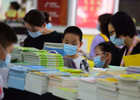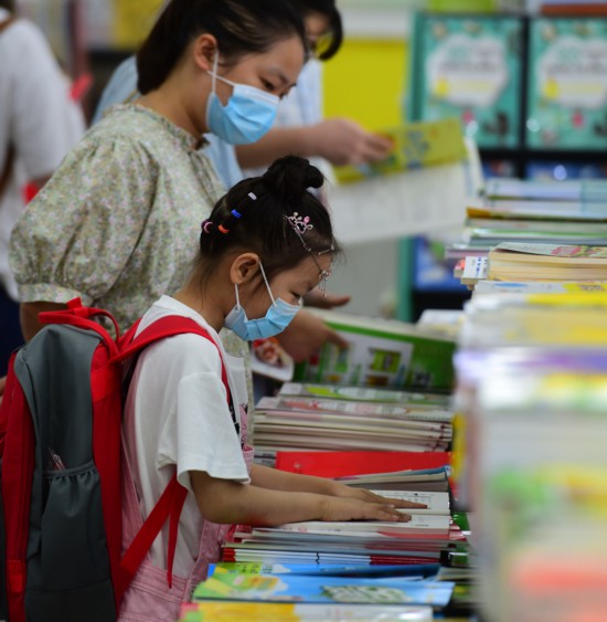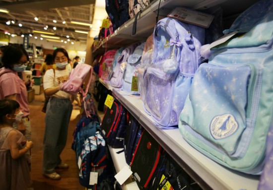 8月21日,在人民路新華書店內(nèi),家長陪孩子選購書包。新學(xué)期臨近,錫城許多家長帶著孩子來到書店選購文具和教輔書籍,“開學(xué)經(jīng)濟(jì)”逐漸升溫。(還月亮 攝)