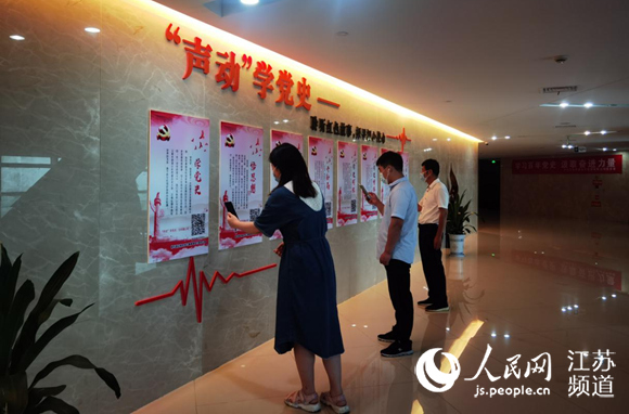 徐圩新區(qū)工作人員利用午休時(shí)間掃碼“聽(tīng)”黨史。徐圩新區(qū)供圖