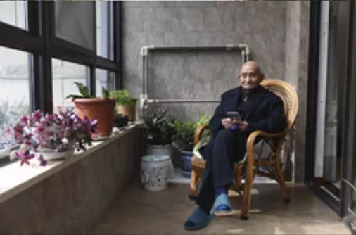 徐家慶在家中陽臺(tái)看手機(jī)里的短視頻娛樂(圖自新華網(wǎng),2019年11月26日攝 )。