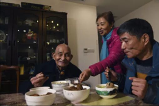 徐家慶在家中吃午飯(圖自新華網(wǎng),2019年11月26日攝 )。