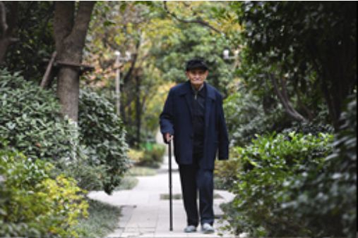 徐家慶在自家小區(qū)內(nèi)散步(圖自新華網(wǎng),2019年11月26日攝 )。