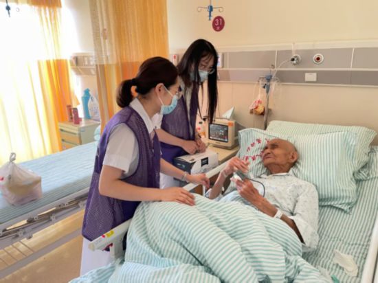 今年7月1日“南京大屠殺幸存者健康呵護(hù)服務(wù)隊(duì)”的醫(yī)護(hù)志愿者在為徐老進(jìn)行健康檢查時(shí)發(fā)現(xiàn)徐老心臟不好,且近期進(jìn)食困難明顯消瘦伴有痰液增多的現(xiàn)象,建議前往醫(yī)院就診治療。江蘇省人民醫(yī)院為徐老就醫(yī)開辟了綠色通道,協(xié)調(diào)后安排在省人醫(yī)河西分院住院。南京侵華日軍受害者援助協(xié)會(huì)志愿者也專門去看望了老人。