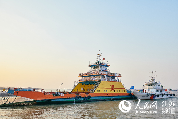 “常通汽渡10號(hào)”是國(guó)內(nèi)首艘借鑒校車色彩涂裝的長(zhǎng)江汽渡船。江蘇海事局供圖